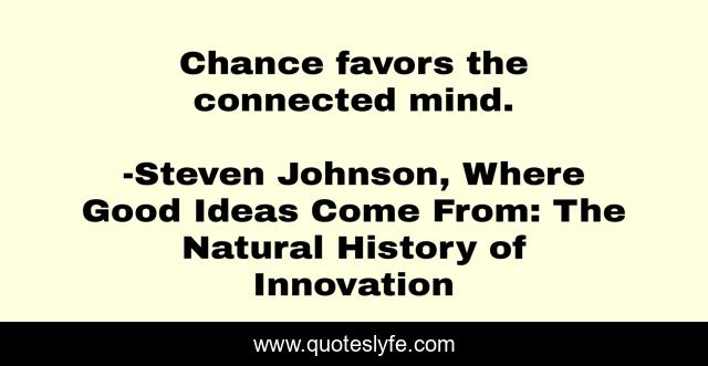 "Steven Johnson, Where Good Ideas Come From: The Natural History of Innovation Quotes." Quoteslyfe.com, 2025. Tue. 09 Dec. 2025. <https://www.quoteslyfe.com/quote/Chance-favors-the-connected-mind-205149>.
