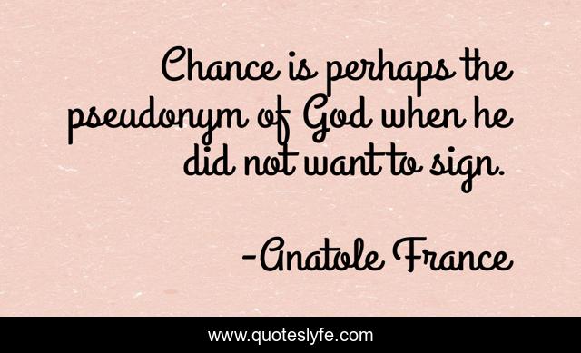 This page presents the quote "Chance is perhaps the pseudonym of God when he did not want to sign.". Author of this quote is Anatole France. This quote is about god, sign,.
