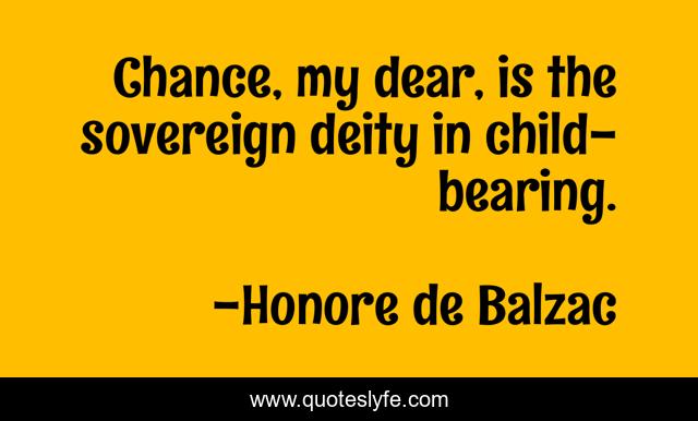 This page presents the quote "Chance, my dear, is the sovereign deity in child-bearing.". Author of this quote is Honore de Balzac. This quote is about dear, sovereign,.