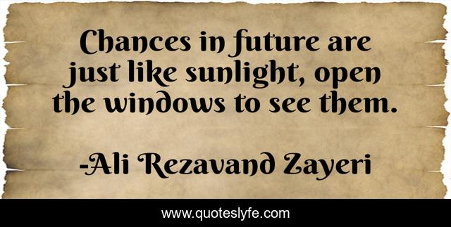 This page presents the quote "Chances in future are just like sunlight, open the windows to see them.". Author of this quote is Ali Rezavand Zayeri. This quote is about chance, future, future-plans, success, goals,.