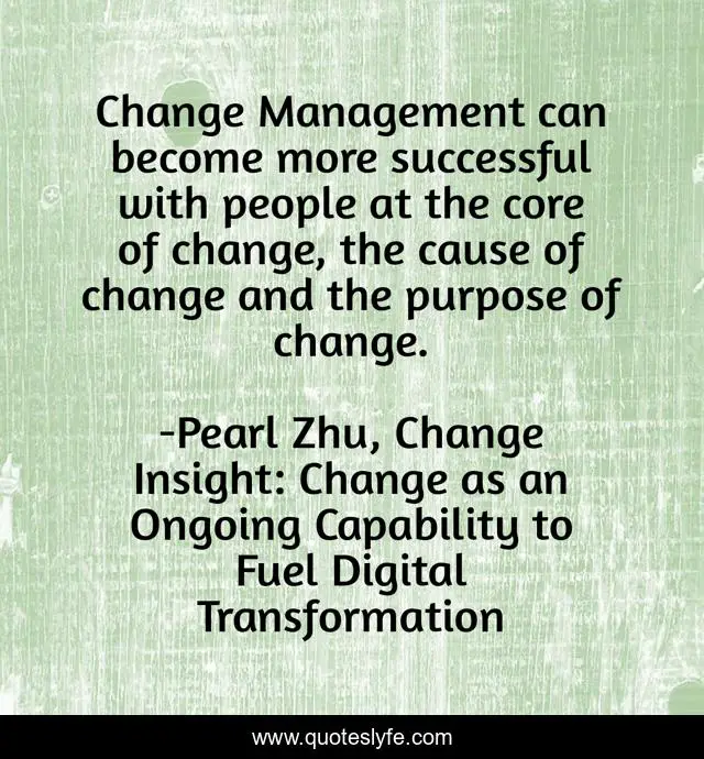 "Pearl Zhu, Change Insight: Change as an Ongoing Capability to Fuel Digital Transformation Quotes." Quoteslyfe.com, 2025. Sat. 06 Dec. 2025. <https://www.quoteslyfe.com/quote/Change-Management-can-become-more-successful-with-51846>.