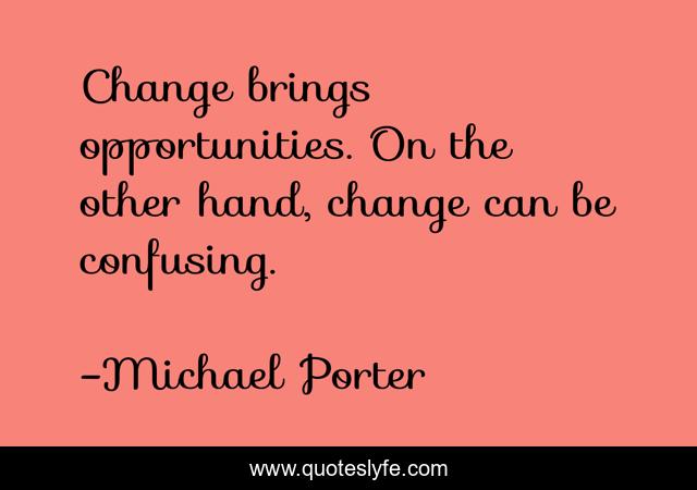 This page presents the quote "Change brings opportunities. On the other hand, change can be confusing.". Author of this quote is Michael Porter. This quote is about opportunities, hand,.