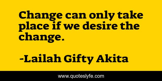 This page presents the quote "Change can only take place if we desire the change.". Author of this quote is Lailah Gifty Akita. This quote is about wise-says, politics, change, citizenship, governance,.