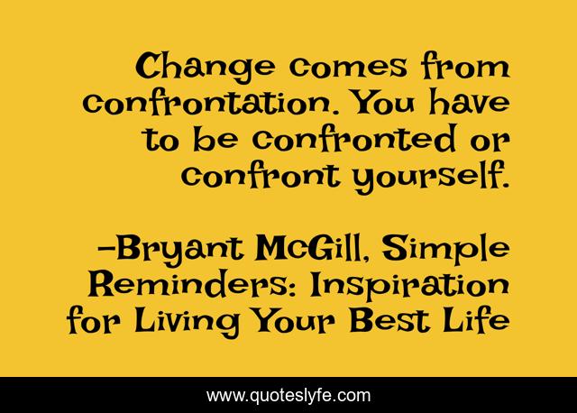 "Bryant McGill, Simple Reminders: Inspiration for Living Your Best Life Quotes." Quoteslyfe.com, 2025. Sat. 06 Dec. 2025. <https://www.quoteslyfe.com/quote/Change-comes-from-confrontation-You-have-to-117290>.