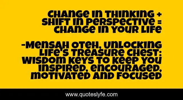 "Mensah Oteh, Unlocking Life's Treasure Chest: Wisdom keys to keep you inspired, encouraged, motivated and focused Quotes." Quoteslyfe.com, 2025. Fri. 05 Dec. 2025. <https://www.quoteslyfe.com/quote/Change-in-thinking-shift-in-perspective-change-48978>.