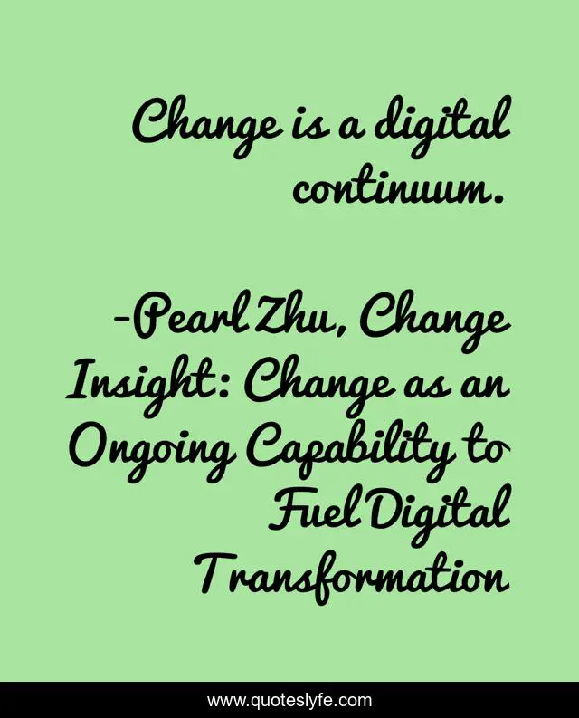 "Pearl Zhu, Change Insight: Change as an Ongoing Capability to Fuel Digital Transformation Quotes." Quoteslyfe.com, 2025. Fri. 05 Dec. 2025. <https://www.quoteslyfe.com/quote/Change-is-a-digital-continuum-60083>.