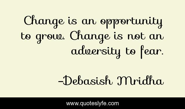 This page presents the quote "Change is an opportunity to grow. Change is not an adversity to fear.". Author of this quote is Debasish Mridha. This quote is about debasish, mridha, philosophy, change, inspirational, enthusiasm, opportunity, grow, adversity,.