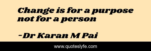 "Dr Karan M Pai Quotes." Quoteslyfe.com, 2025. Fri. 05 Dec. 2025. <https://www.quoteslyfe.com/quote/Change-is-for-a-purpose-not-for-57550>.