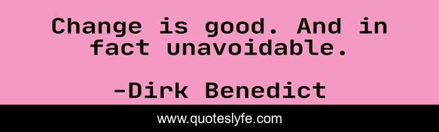 This page presents the quote "Change is good. And in fact unavoidable.". Author of this quote is Dirk Benedict. This quote is about good, unavoidable, fact,.