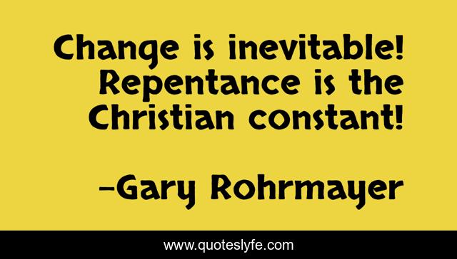 This page presents the quote "Change is inevitable! Repentance is the Christian constant!". Author of this quote is Gary Rohrmayer. This quote is about repentance, change-your-life, change,.