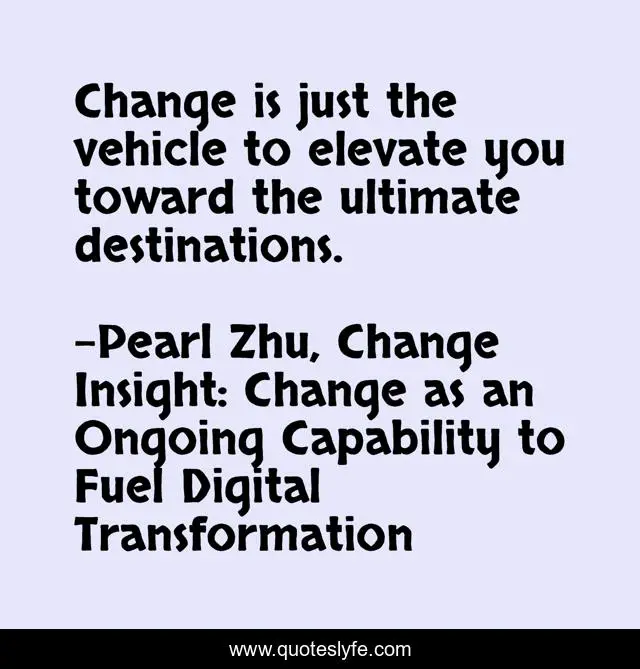"Pearl Zhu, Change Insight: Change as an Ongoing Capability to Fuel Digital Transformation Quotes." Quoteslyfe.com, 2025. Sat. 06 Dec. 2025. <https://www.quoteslyfe.com/quote/Change-is-just-the-vehicle-to-elevate-60079>.