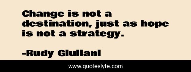 This page presents the quote "Change is not a destination, just as hope is not a strategy.". Author of this quote is Rudy Giuliani. This quote is about destination, change,.