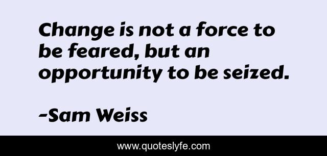 This page presents the quote "Change is not a force to be feared, but an opportunity to be seized.". Author of this quote is Sam Weiss. This quote is about opportunity, change,.