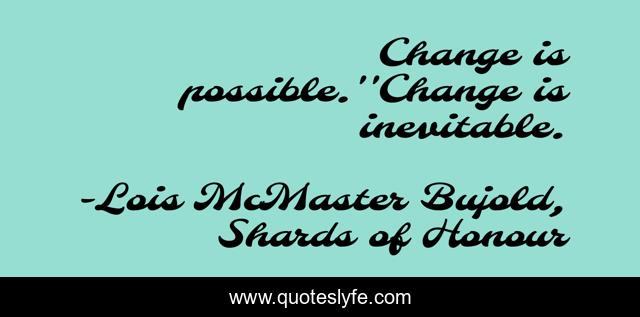 "Lois McMaster Bujold, Shards of Honour Quotes." Quoteslyfe.com, 2025. Fri. 05 Dec. 2025. <https://www.quoteslyfe.com/quote/Change-is-possible-Change-is-inevitable-236120>.