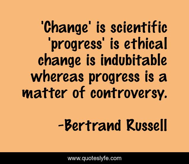 "Bertrand Russell Quotes." Quoteslyfe.com, 2025. Mon. 08 Dec. 2025. <https://www.quoteslyfe.com/quote/Change-is-scientific-progress-is-ethical-change-261316>.