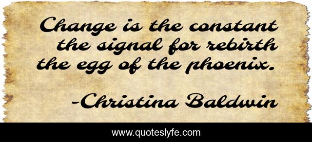This page presents the quote "Change is the constant the signal for rebirth the egg of the phoenix.". Author of this quote is Christina Baldwin. This quote is about positive, confidence, creating, change,.