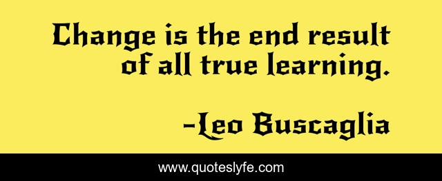 This page presents the quote "Change is the end result of all true learning.". Author of this quote is Leo Buscaglia. This quote is about change, learning,.