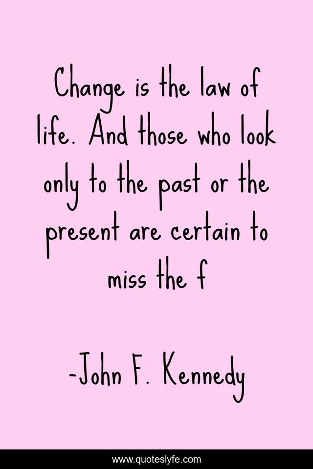 This page presents the quote "Change is the law of life. And those who look only to the past or the present are certain to miss the f". Author of this quote is John F. Kennedy. This quote is about past, future, change,.
