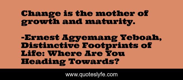 "Ernest Agyemang Yeboah, Distinctive Footprints of Life: Where Are You Heading Towards? Quotes." Quoteslyfe.com, 2025. Fri. 05 Dec. 2025. <https://www.quoteslyfe.com/quote/Change-is-the-mother-of-growth-and-98986>.
