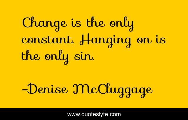 This page presents the quote "Change is the only constant. Hanging on is the only sin.". Author of this quote is Denise McCluggage. This quote is about only, constant, sin,.