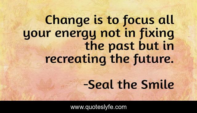 This page presents the quote "Change is to focus all your energy not in fixing the past but in recreating the future.". Author of this quote is Seal the Smile. This quote is about life, recreate, focus, change,.
