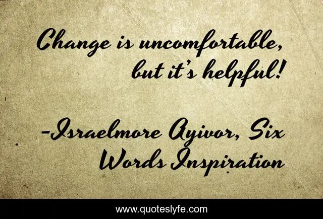 "Israelmore Ayivor, Six Words Inspiration Quotes." Quoteslyfe.com, 2025. Fri. 05 Dec. 2025. <https://www.quoteslyfe.com/quote/Change-is-uncomfortable-but-it-s-helpful-29217>.