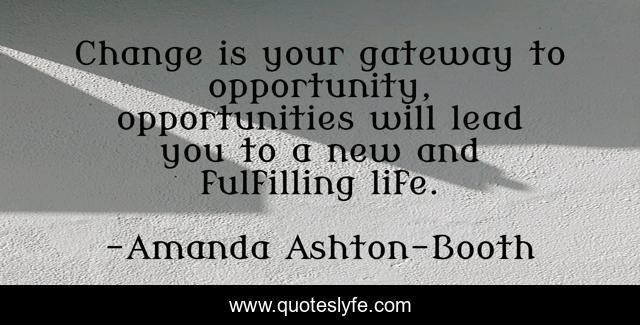 This page presents the quote "Change is your gateway to opportunity, opportunities will lead you to a new and fulfilling life.". Author of this quote is Amanda Ashton-Booth. This quote is about life, opportunity, change,.