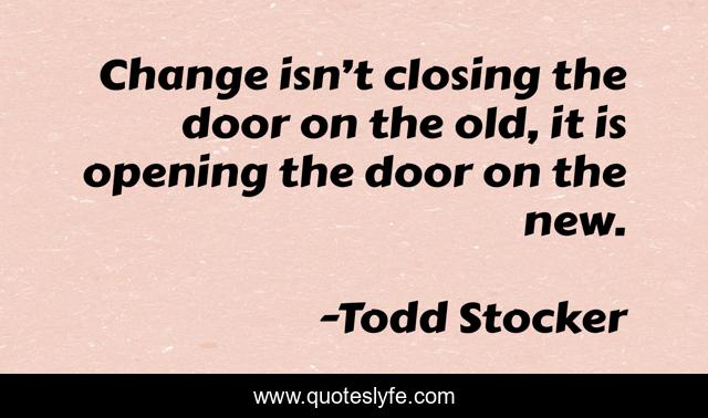 This page presents the quote "Change isn’t closing the door on the old, it is opening the door on the new.". Author of this quote is Todd Stocker. This quote is about confidence, positive, motivational, optimistic, inspirational, enthusiasm, change,.