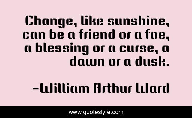 This page presents the quote "Change, like sunshine, can be a friend or a foe, a blessing or a curse, a dawn or a dusk.". Author of this quote is William Arthur Ward. This quote is about sunshine, blessing, friend,.
