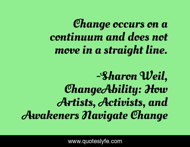 "Sharon Weil, ChangeAbility: How Artists, Activists, and Awakeners Navigate Change Quotes." Quoteslyfe.com, 2025. Fri. 05 Dec. 2025. <https://www.quoteslyfe.com/quote/Change-occurs-on-a-continuum-and-does-59920>.