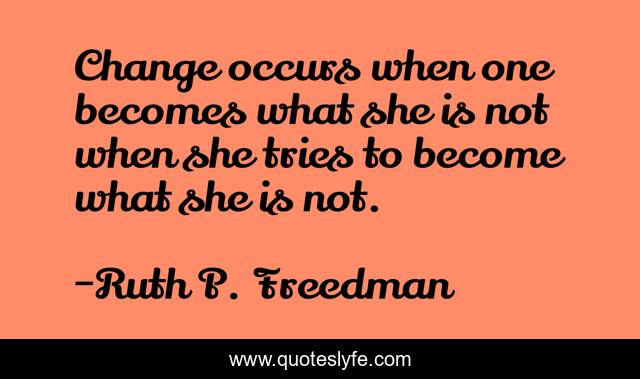 "Ruth P. Freedman Quotes." Quoteslyfe.com, 2025. Mon. 08 Dec. 2025. <https://www.quoteslyfe.com/quote/Change-occurs-when-one-becomes-what-she-275715>.