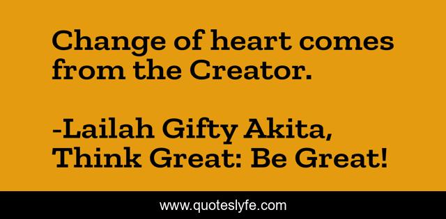 "Lailah Gifty Akita, Think Great: Be Great! Quotes." Quoteslyfe.com, 2025. Sun. 07 Dec. 2025. <https://www.quoteslyfe.com/quote/Change-of-heart-comes-from-the-Creator-105433>.