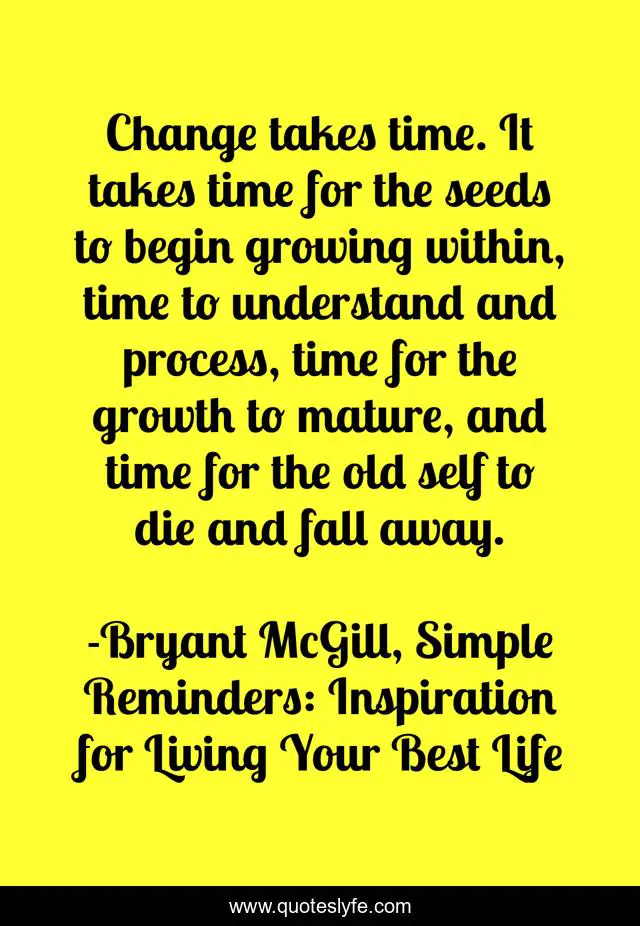 "Bryant McGill, Simple Reminders: Inspiration for Living Your Best Life Quotes." Quoteslyfe.com, 2025. Sat. 06 Dec. 2025. <https://www.quoteslyfe.com/quote/Change-takes-time-It-takes-time-for-139927>.