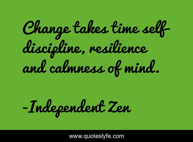 This page presents the quote "Change takes time self-discipline, resilience and calmness of mind.". Author of this quote is Independent Zen. .
