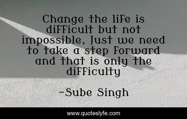 This page presents the quote "Change the life is difficult but not impossible, Just we need to take a step forward and that is only the difficulty". Author of this quote is Sube Singh. .
