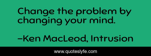This page presents the quote "Change the problem by changing your mind.". Author of this quote is Ken MacLeod, Intrusion. .