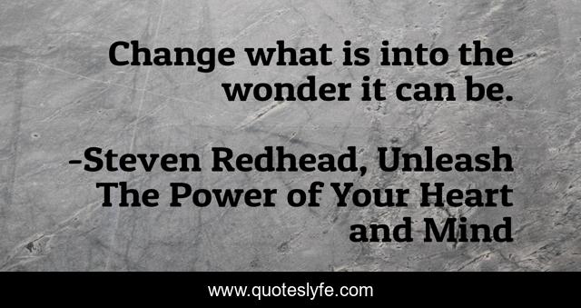 "Steven Redhead, Unleash The Power of Your Heart and Mind Quotes." Quoteslyfe.com, 2025. Sat. 06 Dec. 2025. <https://www.quoteslyfe.com/quote/Change-what-is-into-the-wonder-it-60344>.