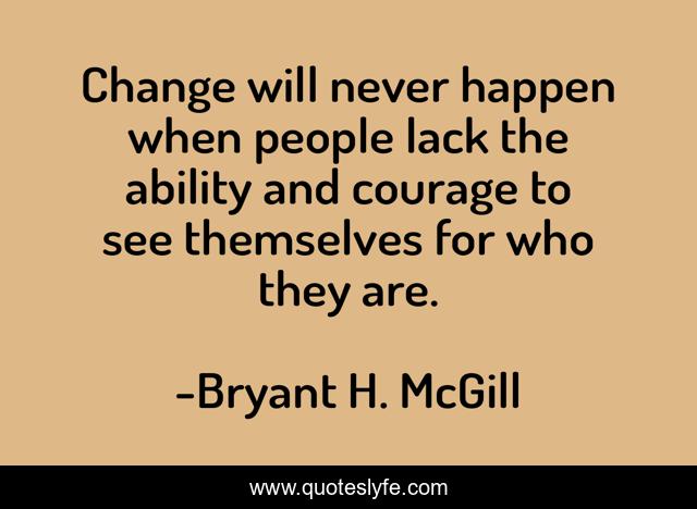 This page presents the quote "Change will never happen when people lack the ability and courage to see themselves for who they are.". Author of this quote is Bryant H. McGill. This quote is about see, change, people,.