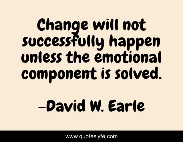 This page presents the quote "Change will not successfully happen unless the emotional component is solved.". Author of this quote is David W. Earle. This quote is about dysfuctional, families, family, change-change, chaos, emotions, love, trust, affection,.