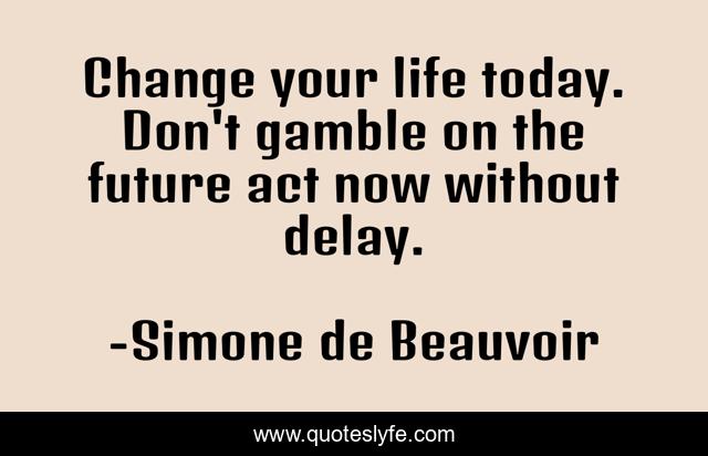 "Simone de Beauvoir Quotes." Quoteslyfe.com, 2025. Sat. 06 Dec. 2025. <https://www.quoteslyfe.com/quote/Change-your-life-today-Don-t-gamble-266243>.