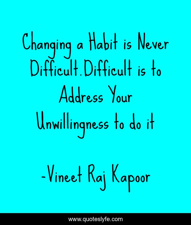 "Vineet Raj Kapoor Quotes." Quoteslyfe.com, 2025. Fri. 05 Dec. 2025. <https://www.quoteslyfe.com/quote/Changing-a-Habit-is-Never-Difficult-Difficult-36613>.