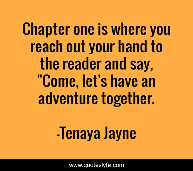 This page presents the quote "Chapter one is where you reach out your hand to the reader and say, "Come, let's have an adventure together.". Author of this quote is Tenaya Jayne. .