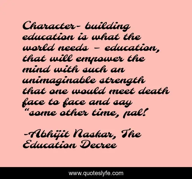 "Abhijit Naskar, The Education Decree Quotes." Quoteslyfe.com, 2025. Mon. 08 Dec. 2025. <https://www.quoteslyfe.com/quote/Character-building-education-is-what-the-world-33859>.