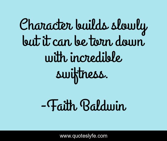 This page presents the quote "Character builds slowly but it can be torn down with incredible swiftness.". Author of this quote is Faith Baldwin. .