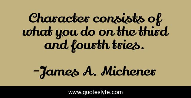 This page presents the quote "Character consists of what you do on the third and fourth tries.". Author of this quote is James A. Michener. This quote is about perseverance, character, persistence, tenacity,.