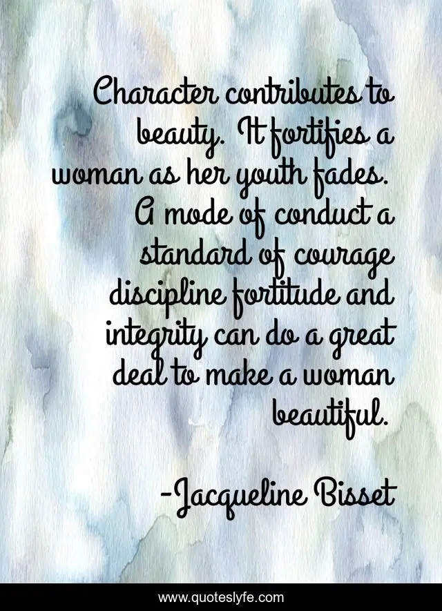 Character contributes to beauty. It fortifies a woman as her youth fades. A mode of conduct a standard of courage discipline fortitude and integrity can do a great deal to make a woman beautiful.