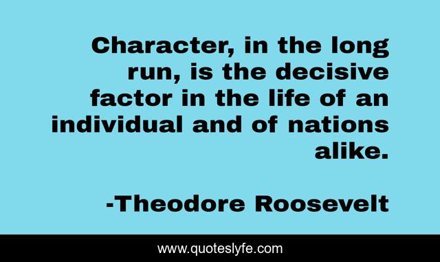 "Theodore Roosevelt Quotes." Quoteslyfe.com, 2025. Sat. 06 Dec. 2025. <https://www.quoteslyfe.com/quote/Character-in-the-long-run-is-the-173405>.