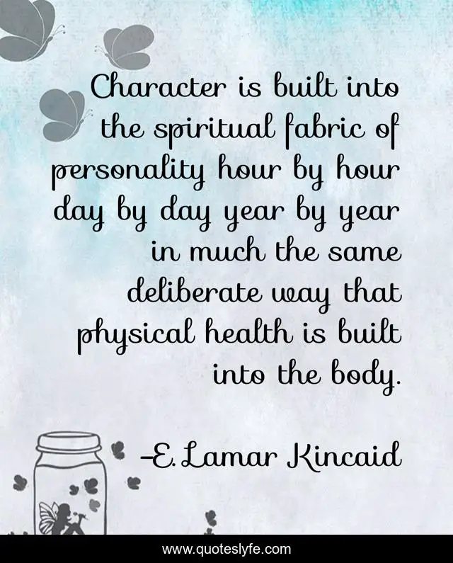 "E. Lamar Kincaid Quotes." Quoteslyfe.com, 2025. Fri. 05 Dec. 2025. <https://www.quoteslyfe.com/quote/Character-is-built-into-the-spiritual-fabric-271527>.
