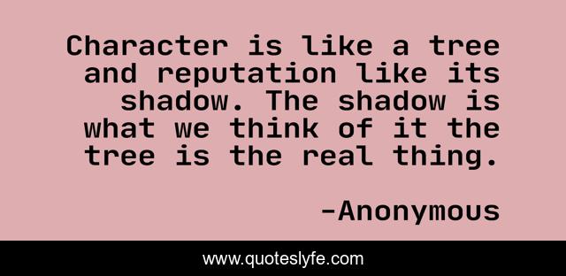 "Anonymous Quotes." Quoteslyfe.com, 2025. Fri. 05 Dec. 2025. <https://www.quoteslyfe.com/quote/Character-is-like-a-tree-and-reputation-261498>.