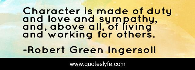 This page presents the quote "Character is made of duty and love and sympathy, and, above all, of living and working for others.". Author of this quote is Robert Green Ingersoll. This quote is about love, character, affection, living,.
